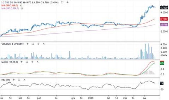Marcowo-kwietniowa fala zwyżek podniosła wycenę spółki o ponad 100 proc. W efekcie rynek stał się w krótkim terminie wykupiony. Widać to nie tylko po niemal pionowej wspinaczce kursu, ale także po zachowaniu oscylatorów. RSI dotarł do 89 pkt, a granica wykupienia jest przy 70 pkt. Z kolei MACD znalazł się na poziomach najwyższych od kilku lat. W minionym tygodniu kurs zaczął się schładzać. Faza na razie ma powolny przebieg i wygląda na to, że na MACD zaraz pojawi się sygnał sprzedaży. Rośnie więc ryzyko, że schłodzenie nabierze tempa i sięgnie niższych poziomów, np. 4 zł.