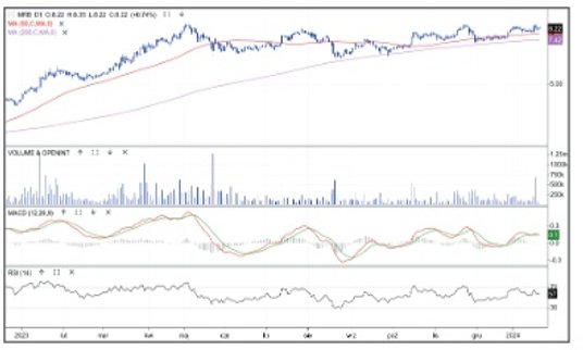 Przedstawiciel branży spożywczej może nie należy do najbardziej płynnych podmiotów, ale warto na niego zwrócić uwagę co najmniej z dwóch powodów. Pierwszy – techniczny – od maja ubiegłego roku cena akcji jest w stabilnym trendzie wzrostowym, poruszając się powyżej średnich z 50 i 200 sesji. Drugi – fundamentalny – spółka poinformowała w minionym tygodniu, że spodziewa się w II kwartale roku obrotowego 23/24 przychodów ze sprzedaży na poziomie 153 mln zł, podczas gdy rok temu było to 123,1 mln zł. W reakcji na te informacja cena wyznaczyła wieloletnie maksimum na poziomie 22 zł. Hossa ma tym samym zielone światło, a najbliższym wsparciem jest średnia z 50 sesji (obecnie przy 19,6 zł).
