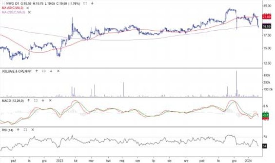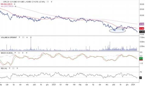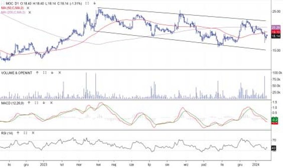 Kurs akcji telekomu porusza się w długoterminowym trendzie spadkowym. W IV kwartale 2023 r. cena zatrzymała się dwukrotnie w okolicy 11,4 zł, tworząc potencjalną formację podwójnego dna z linią oporu przy 14 zł. Grudniowe podejście pod opór dawało techniczne nadzieje na wybicie i być może wstęp do zmiany układu sił.