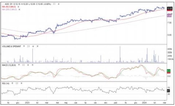 Agora z konsolidacją pod szczytem trendu wzrostowego