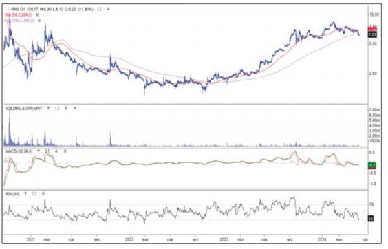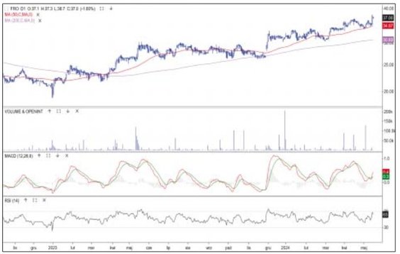 W ciągu ostatnich 12 miesięcy na wykresie właściciela sklepów powstała szeroka konsolidacja. Rozciąga się ona od 340 do 500 zł. W kwietniu kurs po raz drugi wykonał wyraźny zwrot nad dolną granicą, a w minionym tygodniu przebił się przez średnią z 50 sesji, docierając w porywach do 409,9 zł. Notowaniom mogła pomagać informacja, że w akcjonariacie spółki próg 5 proc. przekroczył amerykański gigant finansowy Goldman Sachs.