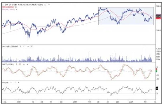 Zakładając kontynuację zwyżek w obrębie konsolidacji, celem w średnim terminie jest 500 zł. Wsparciem pozostaje natomiast okolica dolnej granicy, czyli 340 zł.