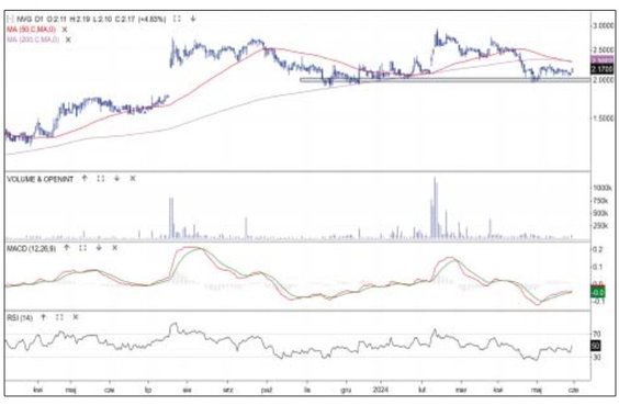 Od lutego kurs akcji spółki realizującej projekty OZE znajduje się w fazie korekty długoterminowego trendu wzrostowego. Zniżka zaczęła się z 3 zł, a na przełomie kwietnia i maja notowania testowały 2 zł. Kurs znajduje się obecnie poniżej średnich z 50 i 200 sesji, które tydzień temu utworzyły formację krzyża śmierci. Skala przeceny i zachowanie średnich zwiększa ryzyko zmiany trendu. Kluczowy pozostaje teraz poziom 2 zł. Jeśli wsparcie pęknie, scenariusz wejścia na ścieżkę spadkową stanie się bardziej realny. Z kolei powrót notowań nad wspomniane średnie zwiększy szanse kontynuacji hossy.