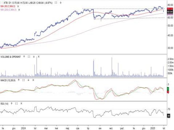 Biotech to obecnie najsłabsza spółka 2025 r. Jej strata YTD wynosiła w piątek rano 28,4 proc. Notowania poruszają się w długoterminowym trendzie spadkowym, ale od grudnia jego tempo wyraźnie wzrosło. W minionym tygodniu inwestorzy negatywnie zareagowali na informację, że niemiecki BioNTech wycofał się z projektu STING. Kurs spadł o 11,3 proc. przy wolumenie niewidzianym od roku. W piątek rano wyprzedaż była kontynuowana i ustanowiony został nowy dołek bessy 27,1 zł. Rynek jest w krótkim terminie wyprzedany, co może prowokować łapaczy spadających noży. W długim terminie obowiązuje jednak bessa.