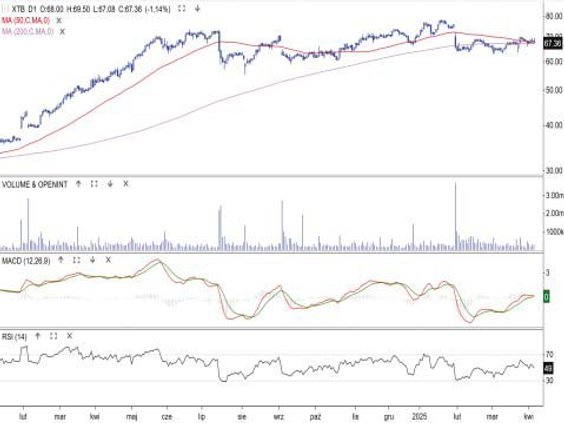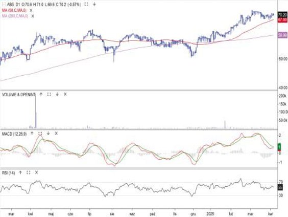 Podmioty z grupy Asseco radzą sobie w tym roku znakomicie, choć tytułowa spółka w marcu weszła w fazę łagodnej korekty i od miesiąca nie wyszła na nowe szczyty hossy. Pojawiły się jednak sygnały zakończenia korekty. W minionym tygodniu kurs akcji zaczął wyraźnie zawracać nad linią średniej z 50 sesji, a na oscylatorze MACD pojawił się cykliczny zwrot nad linią 0. Ponadto spółka poinformowała, że chce zwiększyć skup akcji własnych o 10 mln zł, a w czwartek i piątek notowania nie poddały się podażowej presji wywołanej przez Trumpa. Szczyt hossy 72,80 zł jest najbliższym oporem, a wspomniana średnia pozostaje wsparciem.