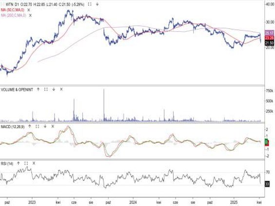 Odzieżowy gigant był w czwartek najgorszym blue chipem i jedną z najgorszych spółek na całym rynku GPW. Kurs akcji spadł o 9,7 proc. przy obrotach sięgających 300 mln zł. Oprócz rynkowego nastawienia mocno ciążyły mu wyniki za IV kwartał. Okazały się bowiem niższe od oczekiwań. Zysk netto wyniósł 448 mln zł, a średnia oczekiwań zakładała 516 mln zł. W piątek kurs akcji przełamał 16 000 zł i przebiegającą nieco niżej średnią z 200 sesji. Na ten moment strefa 17 000–18 500 zł po raz trzeci na przestrzeni ostatnich trzech lat okazuje się barierą nie do przejścia.