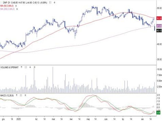 Akcje chemicznej spółki potaniały w czwartek o 3,8 proc. Cena zeszła poniżej średniej z 200 sesji, czyli umownej granicy hossy. Powodem zniżek był opublikowany raport kwartalny. Wyniki okazały się gorsze od oczekiwań, zwłaszcza na poziomie zysków operacyjnego i netto. Pierwszy był o 22 proc. niższy od oczekiwań, a drugi o 67 proc. Patrząc na wykres z szerszej perspektywy wzrosło ryzyko, że kurs wybije się dołem z tegorocznego, szerokiego kanału wzrostowego i wróci na ścieżkę bessy, którą poruszał się od 2023 r. Ważne będzie zachowanie kursu przy 67 zł. Na tym poziomie znajduje się dolna granica wspomnianego kanału.