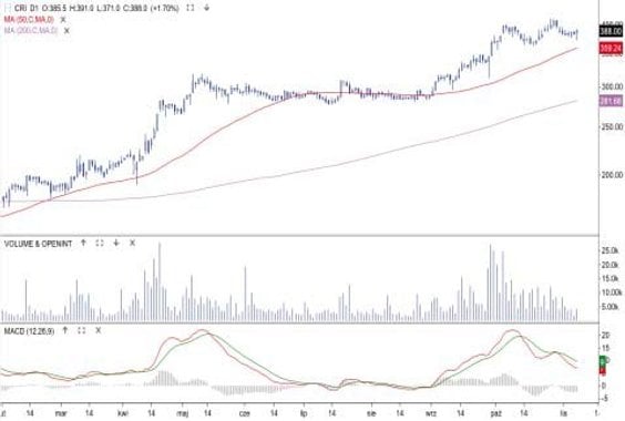 Na wykresie powstała luka spadkowa. Od strony technicznej zwraca jednak uwagę zatrzymanie fali spadkowej w rejonie 10 zł i średniej z 50 sesji. Byki próbują bronić ważnej bariery technicznej i układu hossy, który nadal obowiązuje (kurs powyżej średniej z 200 sesji). Jeśli uda się zatrzymać spadki w rejonie 10-9 zł, całkiem realne będzie rychłe domknięcie luki i wyjście z korekty.