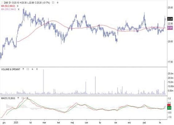 Kurs akcji właściciela sieci sklepów od debiutu porusza się w szerokiej konsolidacji wokół ceny emisyjnej 21,5 zł. W czwartek spółka poinformowała, że przeprowadziła ABB po tej właśnie cenie. Główni udziałowcy chcieli sprzedać 70 mln akcji, ale popyt był tak duży, że sprzedano 30 mln więcej. W reakcji kurs wzrósł w czwartek o 4,6 proc. przy wolumenie niewidzianym od czerwca. Notowania podeszły pod górną granicę konsolidacji (strefa 24-25 zł), co zwiększa szanse na wybicie. W razie cyklicznego zwrotu, wsparciem pozostaje poziom ceny emisyjnej.