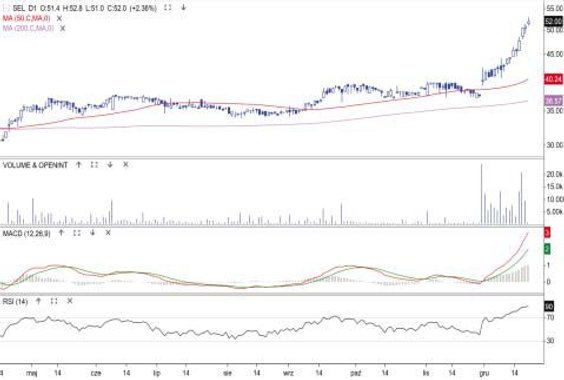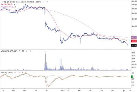 Ostatnie akwizycje, a także pozytywna rekomendacja z początku miesiąca, wywindowały notowania producenta chemii budowlanej do nowego rekordu historycznego. W piątek rano cena sięgała pułapu 20,2 zł. Od początku grudnia walory podrożały już o 30 proc. W ujęciu krótkoterminowym akcje są wyraźnie przegrzane. Potwierdzają to również oscylatory MACD i RSI. Ten ostatni jest na poziomie 90 pkt, co jest obecnie jednym z najwyższych odczytów na GPW. O ile w długim terminie na wykresie obowiązuje trend wzrostowy, to w węższej ramie czasowej wzrosło ryzyko schłodzenia.