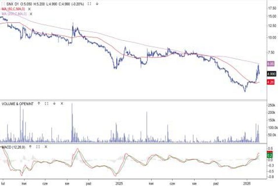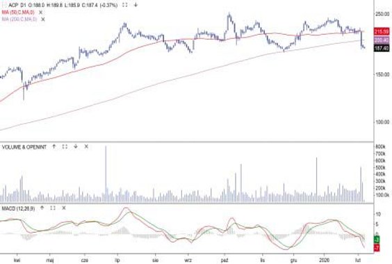Gigant branży IT stracił w minionym tygodniu ponad 13 proc. i notowania po raz pierwszy od marca 2024 r. znalazły się w cenach zamknięcia poniżej 200-sesyjnej średniej, czyli umownej granicy hossy. W spółce trwa konflikt na linii zarząd – OFE NN. Kością niezgody jest pakiet 3 proc. akcji własnych, które posiada Asseco. Zarząd chce je przeznaczyć na program motywacyjny dla założyciela spółki, a fundusz uważa, że akcje należy umorzyć, bo to podniesie wartość udziałów wszystkich akcjonariuszy. Ponadto branża IT jest pod presją konkurencji ze strony agentów AI, która daje już się we znaki firmom IT z Wall Street.