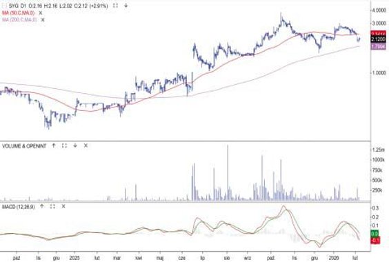 Kurs akcji przedstawiciela branży OZE porusza się w długoterminowym trendzie spadkowym. Pod koniec stycznia cena weszła w fazę silnej korekty, która w minionym tygodniu wywindowała cenę do 6 zł. Na tym poziomie kurs spotkał się z granicą hossy – średnią z 200 sesji – i doszło do dynamicznego zwrotu.