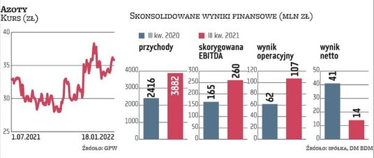 Obecna sytuacja na rynkach surowców jest dużym wyzwaniem dla branży chemicznej, w tym dla grupy kapitałowej Azoty, gdyż powoduje m.in. istotny wzrost kosztów. Mimo to nawozowy koncern nie zamierza zwalniać tempa przedsięwzięć. – Mając na względzie obecne uwarunkowania, szczegółowo analizujemy harmonogramy poszczególnych inwestycji. Na ten moment nie zakładamy istotnych zmian w zakresie zaplanowanych inwestycji – informuje Monika Darnobyt, rzecznik Azotów. Jednocześnie podaje, że wartość tych wydatków poniesiona w ubiegłym roku zostanie ujawniona dopiero przy okazji publikacji wyników grupy za 2021 r. Kiedy to dokładnie nastąpi, jeszcze nie wiadomo. Koncern nie ujawnia też planowanych wydatków na ten rok.