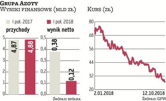 W piątek notowania Azotów spadały nawet o 4 proc., do 26,54 zł. Od początku tego roku kurs chemicznej grupy stopniał aż o 60 proc.