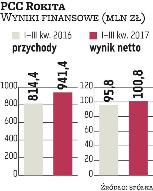 W segmencie polioli PCC Rokita pracuje nad zwiększeniem sprzedaży wysokomarżowych produktów specjalistycznych kosztem masowych. Po trzech kwartałach wolumen sprzedaży tych wyrobów był o 7,5 proc. wyższy niż przed rokiem. Ich udział w przychodach wzrósł w tym czasie z 62 proc. do 66 proc.