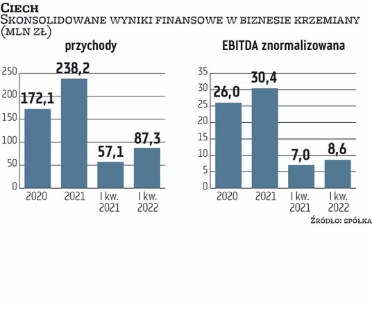 Dodaje, że po stronie kosztowej największy wpływ na tę działalność Ciechu mają ceny gazu ziemnego i sody. Wprawdzie firma korzysta z lokalnych źródeł błękitnego paliwa, ale w związku z trudną do przewidzenia sytuacją na rynku analizuje możliwości stosowania alternatywnych paliw, m.in. LPG. W grę wchodzą także rozwiązania z obszaru odzysku energii z procesu produkcji krzemianów.