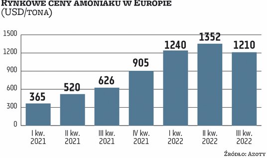 Amoniak od dawna znajduje zastosowanie w działalności biznesowej prowadzonej m.in. przez giełdowe spółki i grupy kapitałowe. Kluczowym jego producentem, nie tylko w Polsce, ale i regionie Europy Środkowo-Wschodniej, od dawna są Azoty. Całkowite zdolności wytwórcze koncernu w tym zakresie wynoszą ponad 2 mln ton rocznie. Podstawowym surowcem wykorzystywanym do produkcji amoniaku jest gaz ziemny. Okresowo Azoty pozyskują go również od innych firm w ramach optymalizacji procesów wewnętrznych lub zakupów uzupełniających. Dla grupy jest to kluczowy surowiec stosowany przy produkcji nawozów.