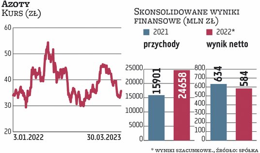 Z ostatnich danych produkcyjnych wynika, że w lutym grupa wytworzyła zaledwie 196 tys. ton nawozów azotowych, 37 tys. ton nawozów wieloskładnikowych i 27 tys. ton nawozów specjalistycznych. W ujęciu rok do roku ich wolumen spadł odpowiednio o 34 proc., 59 proc. i 25 proc. Jakby tego było mało, mocno zmalała także produkcja podstawowych wyrobów chemicznych (pigmenty, mocznik, oxoplast) i tworzyw (poliamid). Koncern informuje, że to konsekwencja dostosowywania się do bieżącej sytuacji podażowo-popytowej na rynku europejskim.