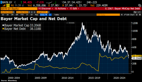 Akcje spółki spadały o 16,4 proc. w poniedziałek do najniższego poziomu od 12 lat, na dodatek w nocy podano wiadomość, że w najnowszym amerykańskim pozwie nakazano spółce zapłacić 1,56 miliarda dolarów w związku z powszechnie stosowanym środkiem chwastobójczym Roundup, co również pogorszyło nastroje.