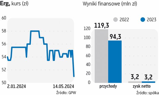 W obecnej sytuacji głównymi celami zarządu Ergu na ten rok są działania zmierzające do ograniczenia skali ponoszonych przez spółkę kosztów oraz wdrożenie do sprzedaży wszystkich produktów wytwarzanych na nowej instalacji. Chodzi o zakończoną w 2022 r. największą w historii firmy inwestycję dotyczącą zakupu jednej z najnowocześniejszych na świecie instalacji do produkcji 7-warstwowej folii LDPE. Budżet projektu wyniósł 21 mln zł.