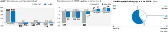 – Przedstawione dotychczas przez Azoty informacje dotyczące naprawy sytuacji w grupie kapitałowej nie wyjaśniają jeszcze, w jaki konkretnie sposób zarząd chce ją wyprowadzić na prostą. Pozytywne jest to, że plan restrukturyzacji jest już gotowy i teraz, aby go realizować, wymaga najpierw zgody Skarbu Państwa, a następnie instytucji finansowych, które kredytują koncern – mówi Jakub Szkopek, analityk Erste Securities Polska. Zauważa, że dopiero wówczas rynek pozna szczegóły. Być może nastąpi to na przełomie tego i przyszłego roku.