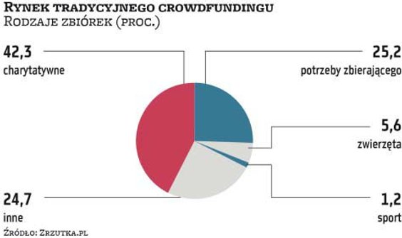Od początku istnienia rynku ECF w Polsce, czyli od 2012 r., łącznie przeprowadzono już 225 emisji (dynamika wzrostu w latach 2020–2021 sięgnęła 42 proc.). W tym czasie spółki pozyskały 308 mln zł. A to wartość rynku bez udziału platform typowo crowdfundingowych, gdzie pieniądze są jeszcze większe. Jak dowiedział się „Parkiet", cały rynek w 2021 r. urósł o 11 proc., do historycznego poziomu 1,21 mld zł. Eksperci przewidują, że w br. wyraźnie przebije on pułap 1,43 mld zł, a dynamika sięgnie 19 proc. Na prawdziwy boom w zbiórkach wskazuje Tomasz Chołast, współtwórca serwisu Zrzutka.pl. Ta wiodąca platforma rosła w minionym roku w tempie 24 proc., a więc dwukrotnie szybciej niż cały rodzimy rynek. Internauci wpłacili w niej na zbiórki blisko ćwierć miliarda złotych, a – jak wynika z najnowszych danych platformy – rekordowym miesiącem był grudzień (wówczas wpłynęło ponad 26 mln zł). O tym, że ten sposób pozyskiwania kapitału przebił się już do mainstreamu, może świadczyć fakt, że wśród organizatorów zrzutek, obok setek tysięcy internautów, pojawiło się także wiele gwiazd i celebrytów, a wśród nich np. Filip Chajzer, Mateusz Damięcki, czy Bracia Golec.