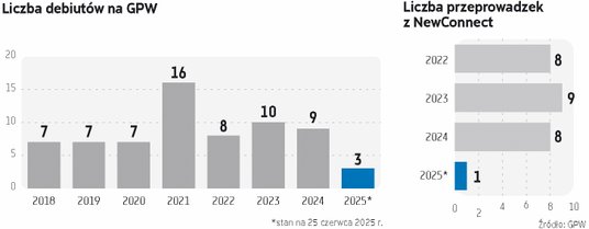 W tym gronie są m.in. 11 bit studios, Brand 24 czy Creotech Instruments. Ta pierwsza weszła na NewConnect w 2010 r. z kursem odniesienia wynoszącym 1,92 zł. Na finiszu pierwszej sesji wzrósł do 3,95 zł. Pod koniec 2015 r. producent gier przeniósł się na rynek główny z kursem wynoszącym 67,25 zł. I choć studio ma za sobą zawirowania (w 2024 r. wycena akcji spadła o ponad połowę), to stopa zwrotu od czasu debiutu prezentuje się imponująco. Obecnie akcje kosztują 219 zł, a cała spółka jest wyceniana na 530 mln zł.