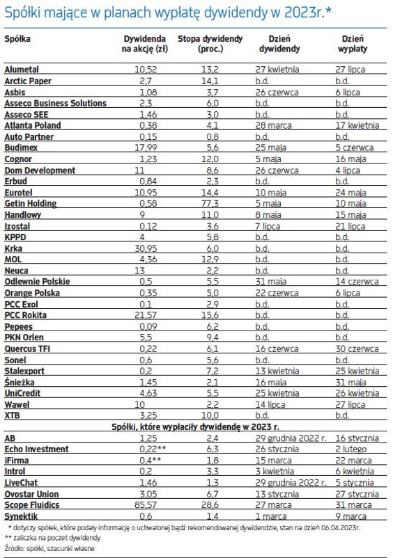 Sezon dywidend na warszawskiej giełdzie powoli się rozkręca. Do tej pory już ponad 40 spółek wyszło z konkretnymi propozycjami dywidendy z zysku za ubiegły rok, a wiele innych skłania się ku jej wypłacie. Sprawdzamy, które firmy będą w tym roku najbardziej hojne dla swoich akcjonariuszy.
