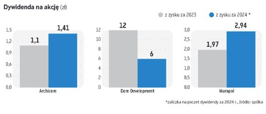 Na dodatkowy wpływ gotówki mogą w tym roku liczyć także akcjonariusze Archicomu, który planuje wypłacić 82,5 mln zł, co daje 1,41 zł na akcję. W tym roku deweloper jest dużo hojniejszy w porównaniu z zaliczką, a nawet łączną dywidendą za 2023 rok, które wyniosły odpowiednio 46 gr i 1,1 zł na walor, co idzie w parze z dużo wyższymi zyskami, które w tym roku notuje.