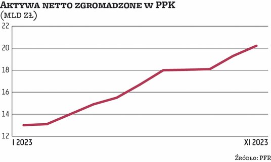 Wyliczał, że średni zysk uczestnika PPK z uwzględnieniem dopłaty pracodawcy i państwa to ok. 120 proc., czyli z każdej odłożonej złotówki, oszczędzający ma obecnie 2,2 złote. Zauważył też, że wdrożenie pracowniczych planów kapitałowych przyspieszyło rozwój alternatywnego pracowniczego programu emerytalnego PPE, w którym aktywa również przekroczyły 20 mld zł, wobec zaledwie 12,8 mld zł na koniec 2018 r., czyli po 14 latach od wdrożenia.