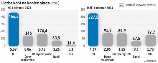 Szykuje się na to branża maklerska. Ta na rynku IKE i IKZE stanowi bardzo ważną grupę. Co prawda pod względem prowadzonych i nowo otwieranych kont emerytalnych maklerzy przegrywają m.in. z branżą TFI, ale to właśnie inwestorzy giełdowi w największym stopniu wykorzystują roczne limity wpłat na IKE i IKZE. Na koniec I półrocza klienci domów maklerskich na tych kontach trzymali aktywa o wartości 10,1 mld zł, co oznacza, że ich udział w całym rynku rachunków emerytalnych sięgał jednej trzeciej.