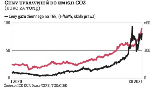 Gwałtowny wzrost cen był częściowo odpowiedzią na spekulacje przedsiębiorców na temat dalszych reform polityki EU ETS, po ogłoszeniu w zeszłym tygodniu nowej umowy koalicyjnej Niemiec o wdrożeniu „pułapu cenowego" EU ETS na poziomie 60 euro/za tonę CO2, jeśli UE nie ustanowi ceny minimalnej we wszystkich państwach członkowskich. Natychmiast po tej informacji ceny uprawnień wzrosły o 5,8 proc. do najwyższych poziomów w handlu dziennym na poziomie 73 euro pod koniec listopada. Kolejne zwyżki cen gazu znowu napędziły ceny uprawnień.