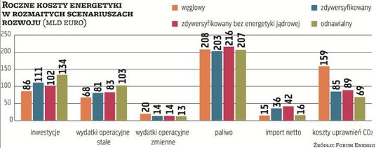 Realizacja strategii transformacji energetycznej według wizji UE będzie wymagać zwiększenia wydatków do 2,8 proc. unijnego PKB. Tylko dla samego polskiego sektora energetycznego szacunkowe nakłady finansowe wyniosą ok. 215 mld euro (czyli niemal bilion zł) w latach 2020–2045, z czego 68 mld euro wydamy na uprawnienia do emisji CO2 – do takich wniosków dochodzi Polski Komitet Energii Elektrycznej, organizacja zrzeszająca polskie firmy energetyczne, w komentarzu do planów Brukseli. Do tej kwoty należałoby doliczyć nakłady na rozbudowę sieci przesyłowych i dystrybucyjnych.