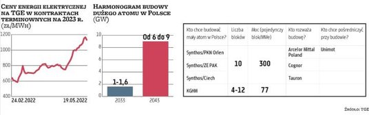 Nawet 22 małe reaktory jądrowe (SMR, wizualizacja na zdjęciu obok) mogłyby powstać w Polsce w latach 30. Ich łączna moc może wynieść blisko 4 GW. To mniej niż planowana moc dużych konwencjonalnych elektrowni jądrowych, jednak obie technologie mają się wzajemnie uzupełniać. Przemysł liczy na własne źródła, w tym na SMR.