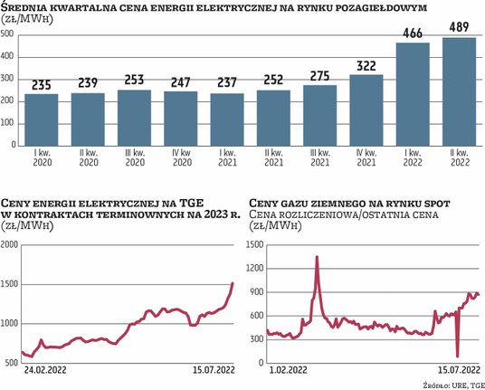 Ceny energii elektrycznej na Towarowej Giełdzie Energii z dostawą na kolejny rok rosną z dnia na dzień. Dostawcy energii dokonują obecnie zakupów na 2023 r. W czwartek 14 lipca ceny te osiągnęły poziom 1607 zł za MWh. Jednymi z powodów są kurcząca się rezerwa mocy elektrowni konwencjonalnych, obawy o dostawy węgla dla energetyki i wreszcie groźba wstrzymania dostaw gazu rosyjskiego do Europy.