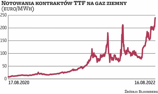 Notowania europejskich kontraktów na gaz, które przez trzy tygodnie utrzymywały się w okolicach 200 euro za megawatogodzinę, rozpoczęły tydzień od kolejnych zwyżek. We wtorek chwilowo wyszły nawet powyżej 250 euro, co do tej pory zdarzyło się tylko przez kilkanaście godzin na początku marca, w szczycie paniki tuż po rosyjskiej agresji na Ukrainę. We wtorek po południu za gaz płacono już o 13 proc. więcej niż w piątek.