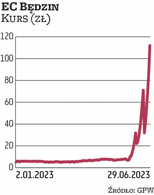 Podobnie jak w ubiegły piątek i ostatnią środę, także i w czwartek, 29 czerwca, ze względu na ogromny popyt na akcje po mniej wiecej pół godzinie od startu notowań handel został zawieszony. W czwartek rano popyt był tak duży, że kurs EC Będzin skoczył ok. 28 proc., sięgając 112 zł. Obroty w zaledwie około 30 min. osiągnęły wartość blisko 1,3 mln zł. Dla porównania dzień wcześniej po zakończeniu notowań wartość obrotów sięgnęła blisko 3 mln zł. Inwestorzy biją się o akcje, których jeszcze nie wykupiła Grupa Altum, a która systematycznie kupuje papiery EC Będzin. Free Float wynosi obecnie już tylko 9,28 proc. Jeszcze pod koniec 2022 r. Grupy Altum nie było w akcjonariacie firmy, a teraz ma ona już ponad 46 proc. udziałów. Jej nowy prezes Sławomir Wołyniec nadal podtrzymuje wiarę w tę spółkę.