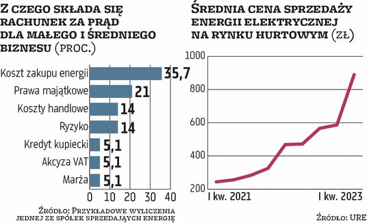 Podstawą do szacowania cen na kolejny rok są kontrakty długoterminowe, które nadal stanowią ok. 60 proc. bazy w kontraktacji na rok kolejny. Obecna ustawowa cena maksymalna po ostatniej rządowej obniżce dla małego i średniego biznesu to 693 zł za MWh, a jak wylicza Marcin Kujawski, starszy ekonomista BNP Paribas, ceny energii na rynku dnia następnego na TGE oscylują w ostatnich tygodniach w przedziale 500–600 zł/MWh. – Notowania kontraktów terminowych na dostawy energii w przyszłym roku z pewną premią przekraczają 600 zł/MWh. Patrząc na koszt zakupu węgla na rynku światowym, który jest wyraźnie niższy od cen płaconych za krajowy surowiec przez lokalne elektrownie, można liczyć, że ceny wytworzenia prądu w nadchodzących miesiącach nieco spadną – uważa Kujawski.