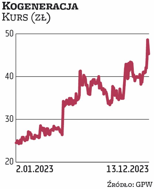 Zysk netto Kogeneracji w tym roku puchnie. Po trzech kwartałach 2023 r. spółka miała 220,93 mln zł zysku netto wobec 76,55 mln zł zarobku rok wcześniej. Mimo to zarząd rekomenduje niewypłacanie dywidendy za 2023 r.
