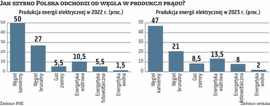 Największe spadki dotyczyły energetyki węglowej. W całym 2023 r. w elektrowniach opartych na węglu kamiennym wyprodukowano 76,61 TWh energii, co oznacza spadek o 12,7 proc. Z węgla brunatnego wyprodukowano 34,6 TWh energii. To spadek aż o 26,4 proc. rok do roku. Węgiel odpowiadał w 2023 r. za 67,8 proc. produkcji energii ogółem w naszym kraju. Rok wcześniej, w 2022 r., było to 76,8 proc. Z gazu ziemnego wyprodukowano 13,6 TWh energii. Oznacza to wzrost aż o 36,5 proc.