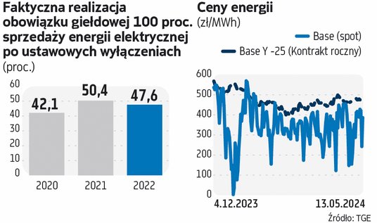Jego zdaniem brak obowiązku sprzedaży energii za pośrednictwem TGE prowadzi do wzrostu manipulacji ceną, a w konsekwencji uniemożliwia ustalanie konkurencyjnej stawki, która jest punktem odniesienia także dla mechanizmów wsparcia, np. OZE, oraz wielu umów zawieranych na rynku. Kaliś wskazuje, że bardzo ważne jest, by z obliga giełdowego zostały zwolnione źródła wytwórcze przyłączane bezpośrednio do sieci zakładów przemysłowych, produkujące energię elektryczną zużywaną na potrzeby własne.