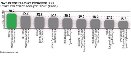 – Akronim ESG zrobił w ciągu ostatniej dekady olbrzymią karierę w branży inwestycyjnej, a dążenie do zrównoważonego rozwoju to być może najważniejszy obecnie trend na rynku – ocenia Kamil Cisowski, dyrektor zespołu analiz i doradztwa inwestycyjnego, DI Xelion. – Pewnym katalizatorem popularyzacji funduszy, które ideę zrównoważonego rozwoju wpisują w politykę inwestycyjną, stał się rok 2020, w którym, m.in. za sprawą gwałtownego wzrostu wartości spółek z sektora „czystej energii" wyróżniały się one wyraźnie na tle szerokiego rynku, ale nawet jeżeli trend chwilowo osłabnie wraz z wahaniami rynkowymi, nie zniknie – zapewnia Cisowski. Przypomnijmy, że w 2020 r. 75 proc. zrównoważonych funduszy akcji pobiło wskaźniki rynkowe, a 25 z 26 funduszy indeksowych typu ESG pokonało fundusze szerokiego rynku.