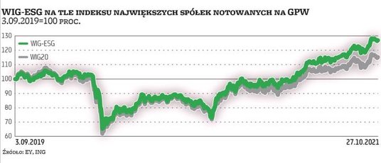 Największy udział w WIG-ESG mają duże przedsiębiorstwa z udziałem Skarbu Państwa w akcjonariacie. Te same, które determinują zachowanie indeksu WIG20. Oba wskaźniki są ze sobą wyraźnie skorelowane. Licząc od momentu powstania WIG-ESG, indeks ten wygrywa z WIG20 stopą zwrotu wyższą o kilkanaście punktów procentowych, ale jednocześnie wypada w tym okresie nieco gorzej niż szeroki WIG.