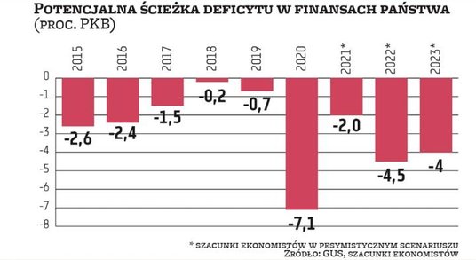 – Przed wybuchem wojny, oczekiwaliśmy deficytu sektora na poziomie 2,2 proc. PKB w 2022 oraz 1,9 proc. w 2023 r. Obecnie nasze szacunki to odpowiednio 3,7 oraz 4,4 proc. PKB – mówi Pogorzelski. – Szacujemy, że w 2022 r. deficyt sektora general government wyniesie ok. 4,5 proc. PKB, a w przyszłym roku będzie nadal powyżej 4 proc. PKB – ocenia z kolei Adam Antoniak, ekonomista ING Banku Śląskiego.