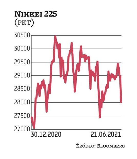 Zmiana narracji Fedu na nieco bardziej jastrzębią wywołała nerwowe reakcje inwestorów, o czym może świadczyć przebieg poniedziałkowej sesji. Zaczęła się ona od solidnych spadków w Azji. Japoński indeks Nikkei 225 tracił nawet 4 proc., a zamknął się 3,29 proc. na minusie. Hang Seng, główny indeks giełdy w Hongkongu, stracił 1,26 proc., koreański Kospi zamknął się 0,93 proc. pod kreską, a tajwański Taiex spadł o 1,48 proc. Rynki europejskie reagowały spokojniej. Część z nich lekko zyskiwała po południu. Niemiecki DAX rósł o 0,4 proc., ale brytyjski FTSE 100 nieznacznie spadał. Sesja w USA zaczęła się od zwyżek. Dow Jones Industrial zyskiwał na jej początku 0,9 proc. W zeszłym tygodniu stracił jednak 3,5 proc., co było dla tego indeksu najgorszym tygodniowym wynikiem od października.