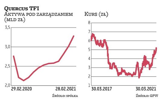 Lepszy klimat wokół TFI widać na giełdzie. Od początku roku akcje Quercusa zyskały niemal 40 proc., a Skarbca Holdingu aż 72 proc. Okazuje się, że zainteresowanie biznesem TFI wyrażają także miliarderzy. Jak podał Quercus TFI, po wtorkowej sesji związany z rodziną Juroszków BetPlay International ma ponad 5,1 mln sztuk akcji, co stanowi 8,4 proc. ogólnej liczby głosów na walnym zgromadzeniu. Przedtem spółka miała zaledwie 2,4 tys. sztuk akcji TFI. Przekroczenie progu 5 proc. nastąpiło wskutek zarejestrowania ostatniego podwyższenia kapitału Quercusa.