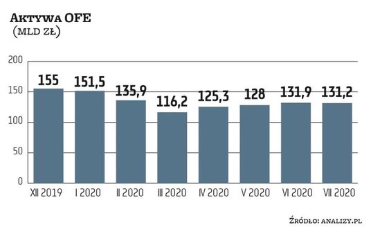 Do rozstrzygnięcia jest też kurs, po jakim zaksięgowane zostaną aktywa przenoszone z OFE do ZUS. W starym projekcie mowa była o połowie kwietnia 2019 r. Wtedy wartość aktywów zgromadzonych w OFE przekraczała 154 mld zł. Od tego czasu mocno jednak spadła, głównie za sprawą pandemii, która rykoszetem uderzyła w giełdy i kursy notowanych tam akcji. W krytycznym momencie, w marcu, wartość aktywów zgromadzonych w OFE spadła do ok. 116 mld zł. Dziś odbiła do przeszło 130 mld zł, ale wciąż jest znacznie niższa niż wiosną zeszłego roku.