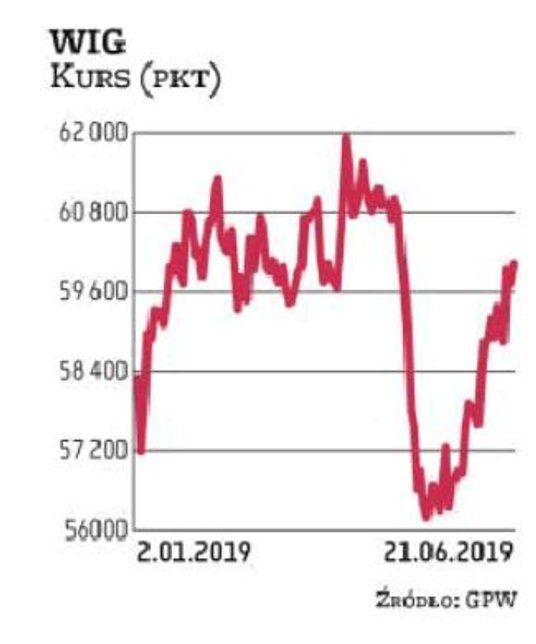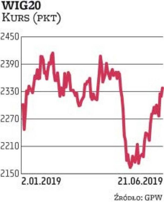 – Inwestorzy już od pewnego czasu oczekują obniżek stóp procentowych przez Fed, co znalazło odzwierciedlenie w najnowszych prognozach członków tego gremium (tzw. dot-plot). Wprawdzie obecnie Fed spodziewa się jednej obniżki stóp dopiero w 2020 r., prezes Powell w swojej wypowiedzi na konferencji po posiedzeniu zostawił otwartą furtkę do rozpoczęcia stymulacji znacznie wcześniej – wspomina Michał Krajczewski, kierownik zespołu ds. doradztwa inwestycyjnego w BM BGŻ BNP Paribas. Przyznaje, że takie warunki wspierają ceny surowców oraz aktywów notowanych na emerging markets. – Widzieliśmy więc w ostatnim tygodniu dynamiczne odbicie indeksu akcji MSCI EM, który jeszcze pod koniec maja notował najmocniejsze wyprzedanie na wskaźniku RSI od kilku lat. W ślad za tymi zmianami odreagował także indeks WIG20. Równocześnie zbliża się on jednak do istotnego poziomu oporu na 2400 pkt – zauważa Krajczewski. Również jego zdaniem rozwój sytuacji zależeć będzie od wyniku rozmów USA–Chiny na szczycie G20. – Ewentualne pozytywne komunikaty byłyby paliwem do dalszych wzrostów, natomiast brak porozumienia może być pretekstem do korekty indeksów akcji – przewiduje Krajczewski.