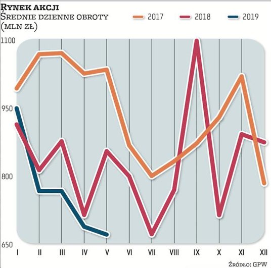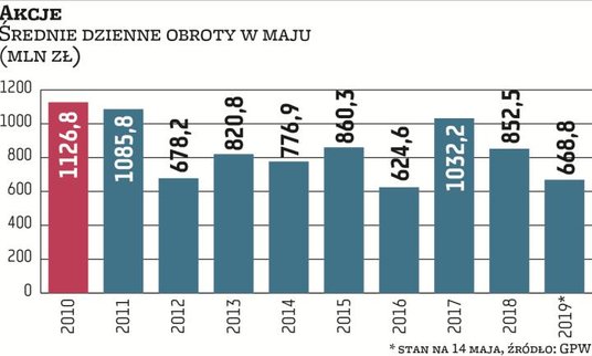 W maju średnie dzienne obroty na GPW (bez środowej sesji) wynoszą niecałej 669 mln zł. Na tę chwilę to najsłabszy wynik od trzech lat. Jest to o tyle zaskakujące, że w ostatnim czasie na rynku pojawiła się też większa zmienność, która przynajmniej w teorii powinna skłonić inwestorów do większej aktywności. Brokerzy jednak wskazują, że problemy z płynnością mają głębsze korzenie i składa się na nie kilka czynników.