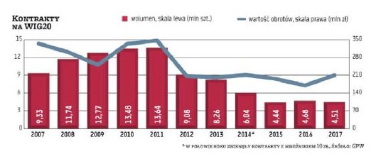 GPW nie ukrywa jednak, że pomysł zmiany kroku notowań zamierza także skonfrontować z oczekiwaniami samych inwestorów, również tych indywidualnych. To właśnie oni generują największy obrót na rynku kontraktów terminowych. W 2017 r. ich udział w tym segmencie rynku wyniósł 51 proc. – Poza konsultacjami z członkami giełdy GPW planuje przeprowadzić ankietę wśród inwestorów indywidualnych, m.in. na konferencji WallStreet w Karpaczu, i zapytać, czy byliby zainteresowani zmniejszeniem kroku notowań z 1,00 pkt do 0,50 pkt lub 0,25 pkt – usłyszeliśmy w biurze prasowym GPW.